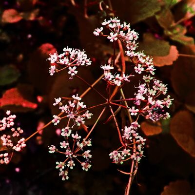 | Blüte: | fünfzählig, angeordnet in Doppeldolden | |